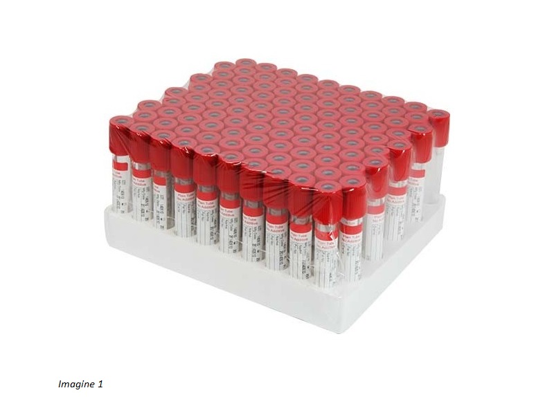 | Imagine 1, 2 | PET | tub (vacutainer) recoltare sange, clot activator, dop rosu, 13 x 100 mm - 6 ml | 100 buc. |