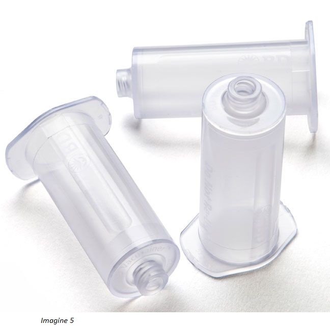 - acul se retrage automat dupa folosire in cartusul alb, protejand pacientii si personalul din spital de ranirii accidentale.