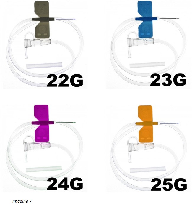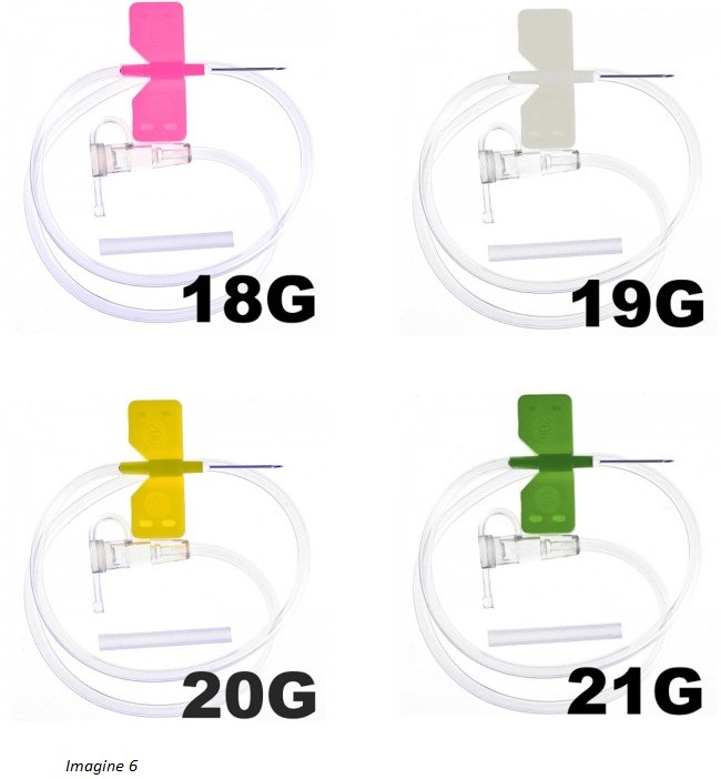| Imagine 6, 7 | Microperfuzoare tip fluturaș, ac de diverse dimensiuni Sunt prevăzute cu ac din oțel inoxidabil și conexiune sigură cu aripioare și tubulatură din plastic nontoxic, care permit o manevrare corectă și ușoară. Codul de culoare corespunzător dimensiunii este internațional. | 100 buc. |