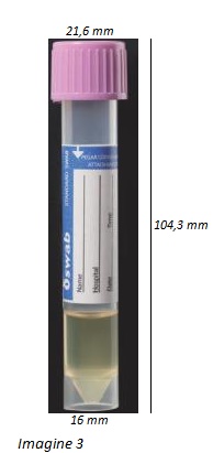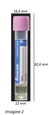 | Imagine 1 Imagine 3 | 3 | 304295 | tub 3 ml mediu Virus+tampon nasofaringeal cu capat pufos | punct de rupere al tamponului la 100 mm | 480 |